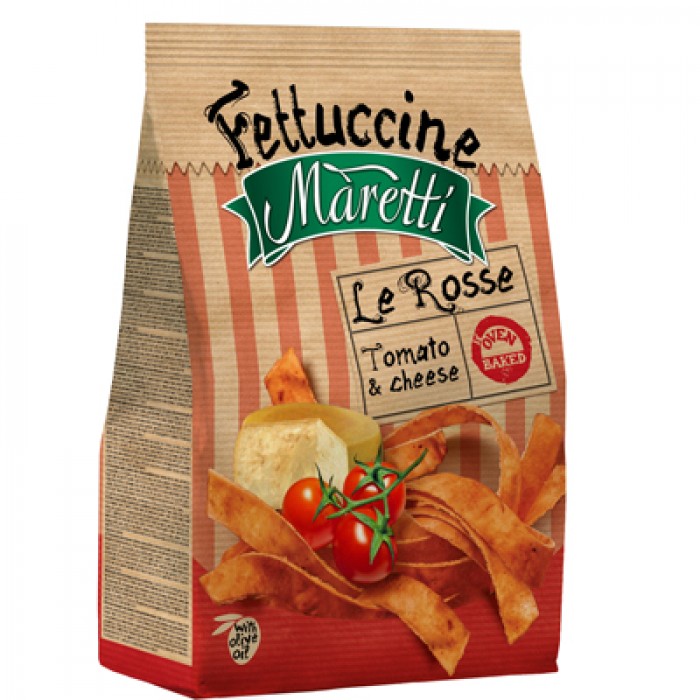 FETTUCCINE MARETTI Tomato & Cheese are crunchy wheat flour ribbons with gentle classic tomato & cheese seasoning.